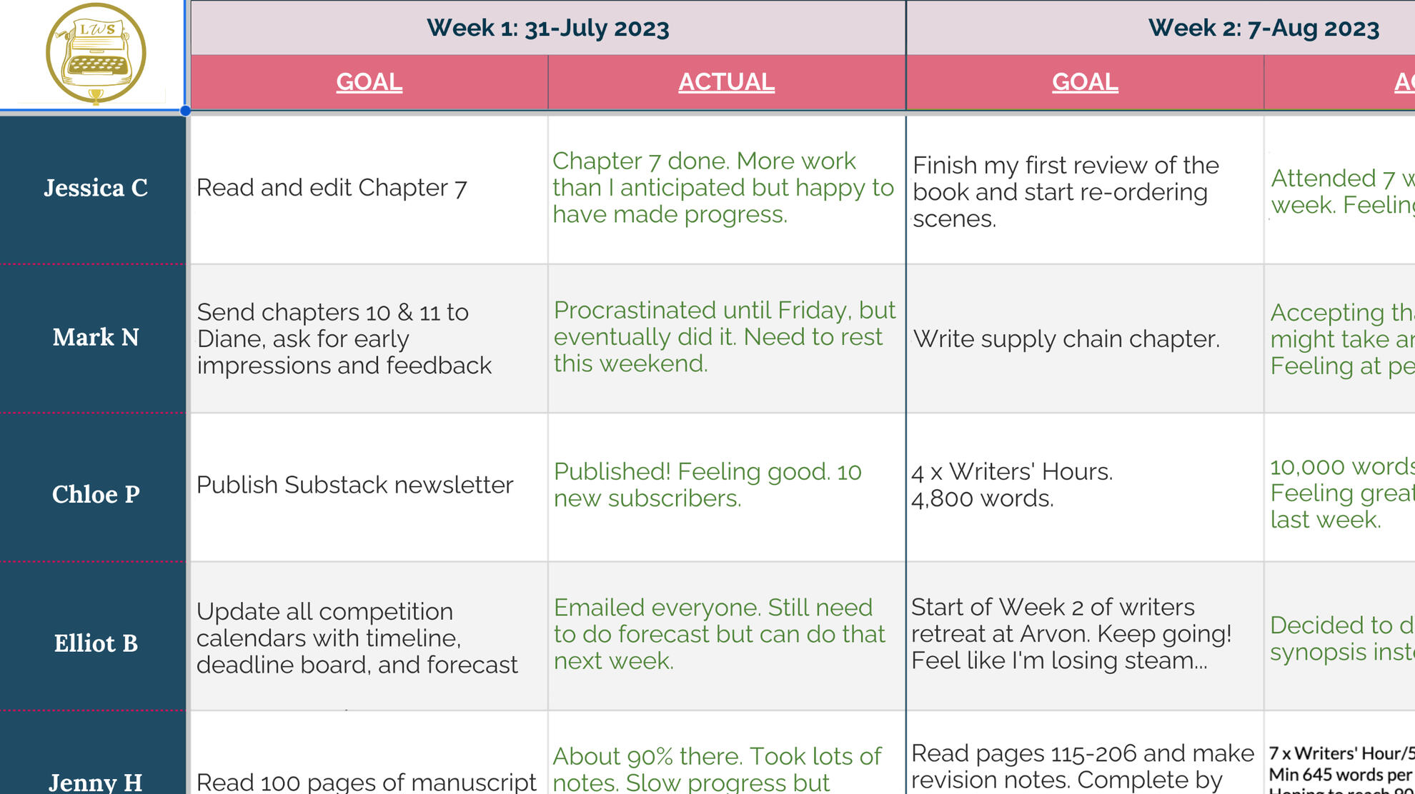 Paying Members also get access to:💰 Paid Writing Opportunities📣 A Place to Share Published Work✅ Monthly Writing Accountability Challenges📖 Free subscription to Writers' Hour Magazine🎟 50%-off Salon Interviews & Workshops☕️ 25%-off LWS Shop🙏 Shoutout at Thursday's Writers' Hour🎯 Monthly Goal Setting Workshops & Trackers